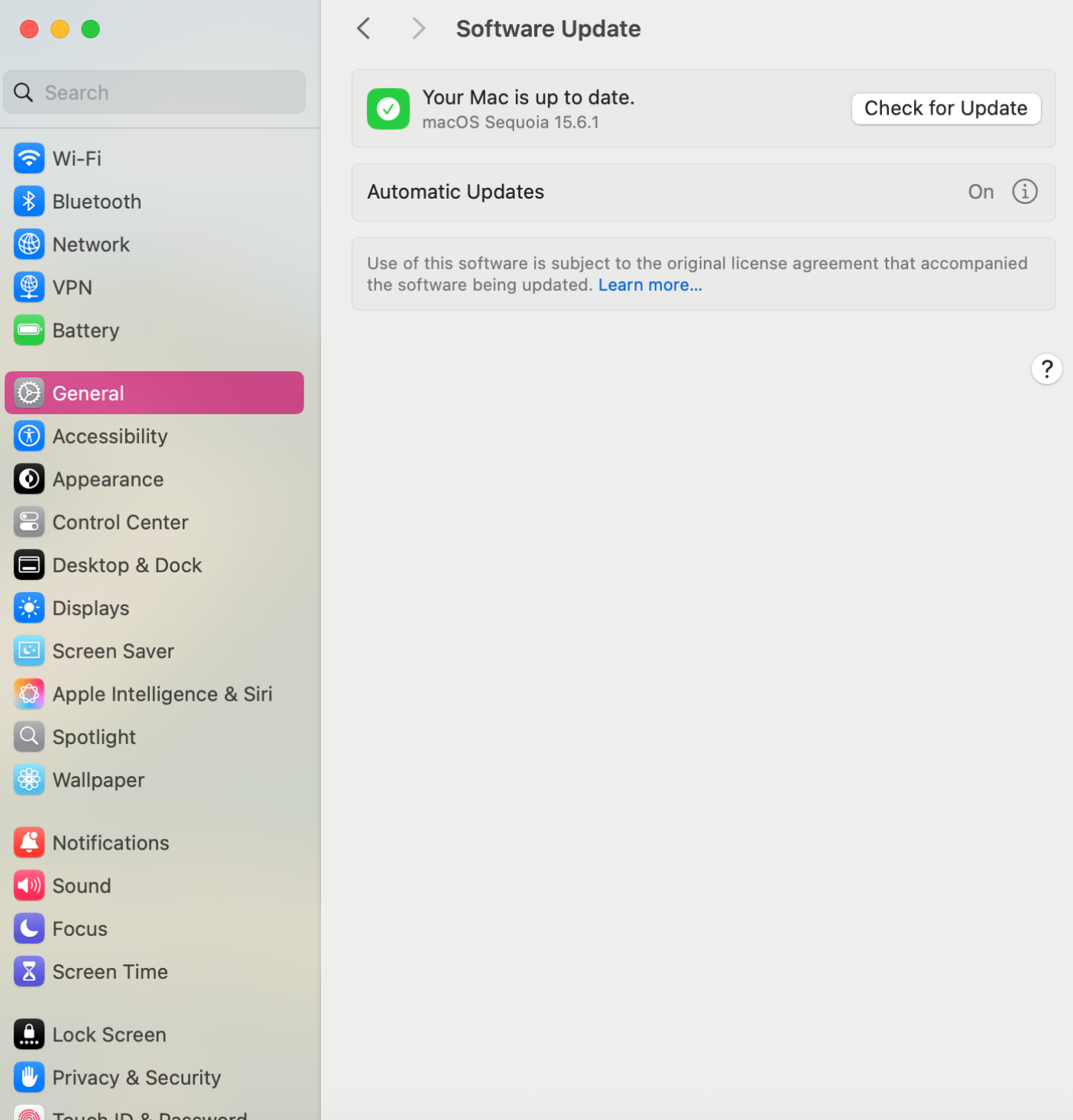 - Open the General tab and click Software Update.