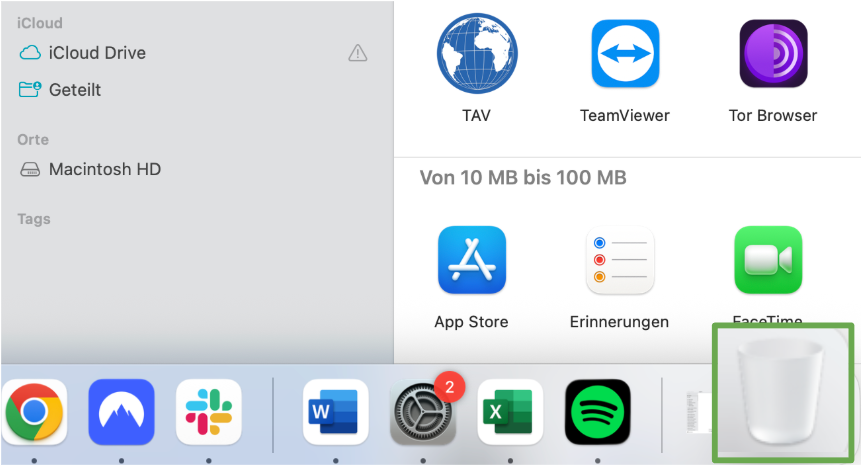 - Öffne anschließend den Papierkorb, suche den Ordner und entferne ihn (alternativ kannst Du den gesamten Papierkorb leeren).