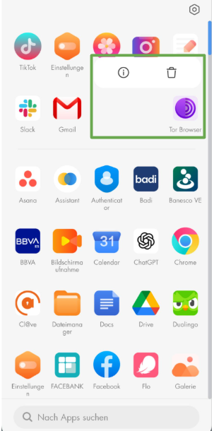 - Suche das App-Symbol für den Tor-Browser.