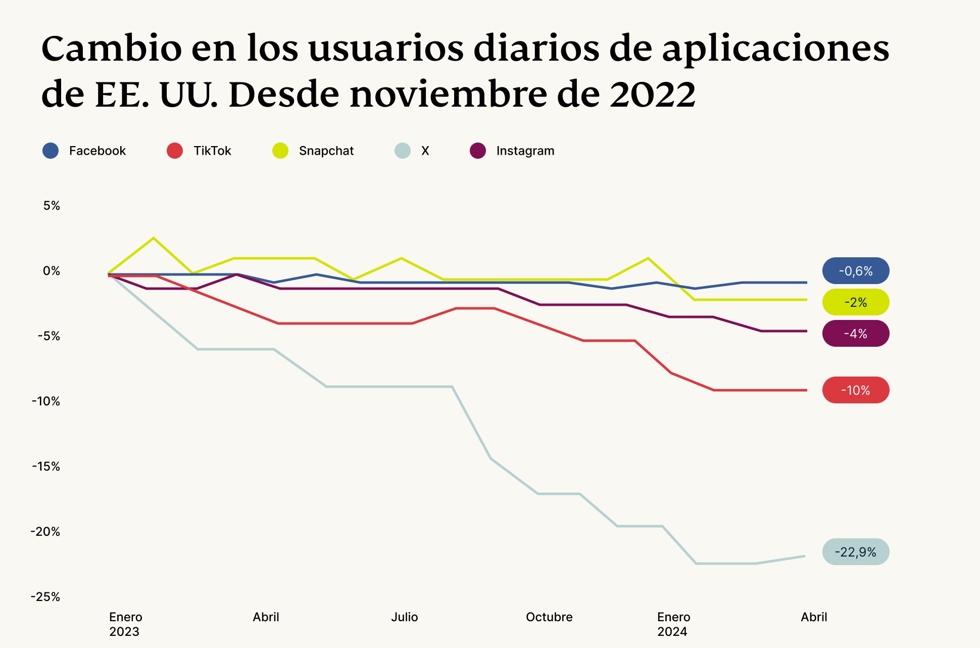 Los esfuerzos de X para alcanzar el estatus de súper aplicación, especialmente en un mercado estadounidense muy competitivo, saturado de gigantes como Facebook, YouTube, Instagram y Snapchat, representan un desafío notable. Actualmente, está clasificada como la quinta plataforma de redes sociales más popular. Un aspecto central de la lucha de X es su inestable base de usuarios, un aspecto importante que debe abordarse si X quiere alcanzar sus ambiciosos objetivos.
