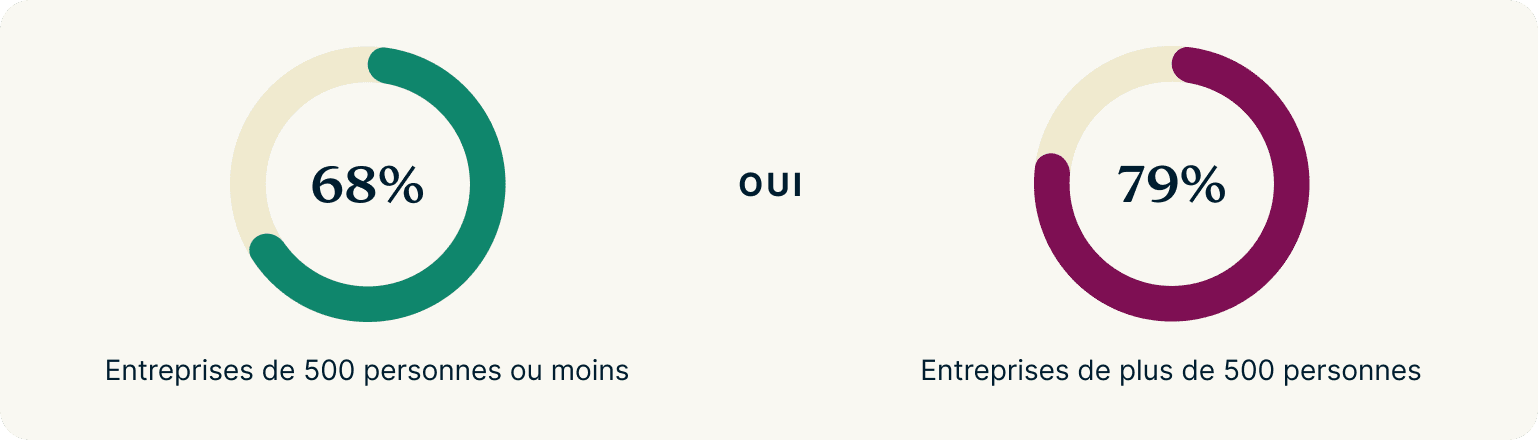 Les employeurs des entreprises de plus de 500 collaborateurs sont les plus intéressés par un environnement de travail immersif, par rapport aux entreprises de moins de 500 collaborateurs. Les salariés des grandes entreprises, en revanche, sont les moins susceptibles de dire qu'ils seraient intéressés par un travail dans le métavers.