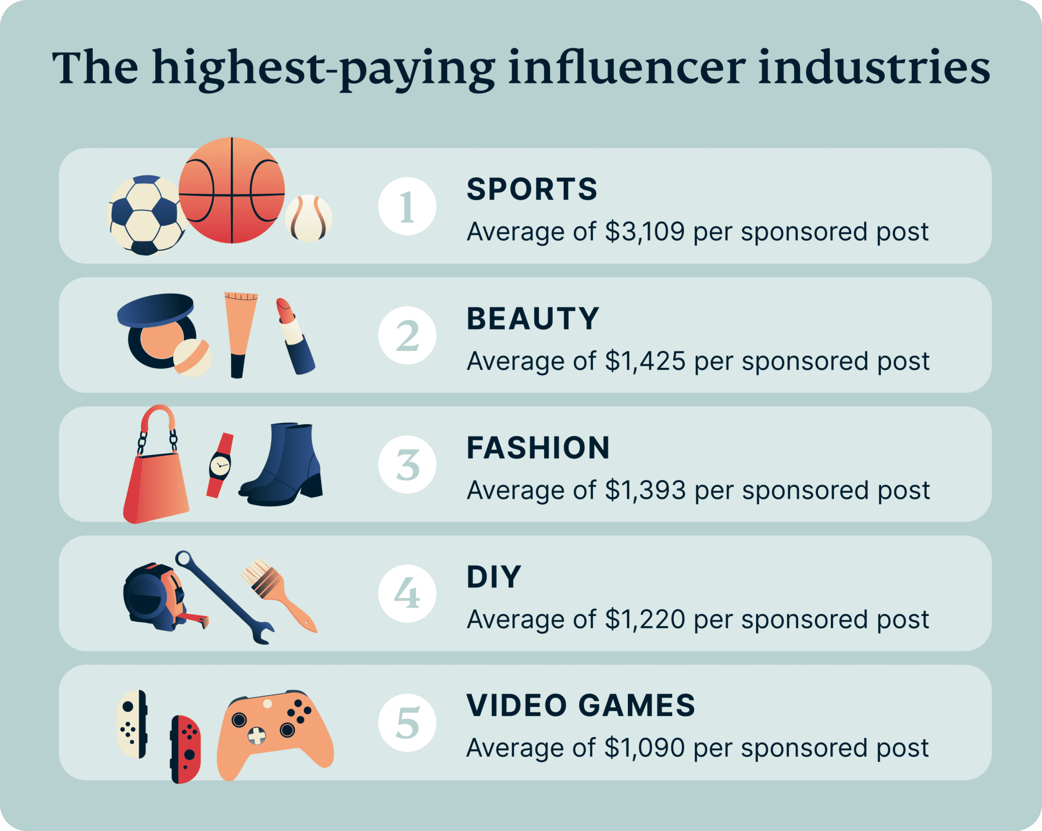 Quali settori pagano di più? Gli stipendi più generosi per gli influencer tendono a provenire da bellezza, moda, fitness, gaming e finanza. Gli influencer nel settore della bellezza, ad esempio, possono richiedere cifre elevate per tutorial di trucco e sponsorizzazioni di marchi, mentre gli influencer finanziari (noti come "Finfluencers") guadagnano molto da sponsorizzazioni di carte di credito e investimenti.