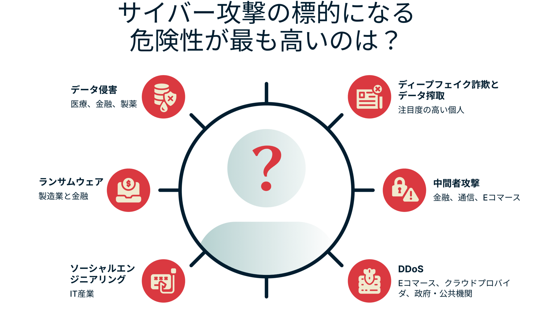 サイバー攻撃はあらゆる個人や企業を標的にする可能性がありますが、業務の性質や扱うデータの機密性から、より影響を受けやすい分野もあります。医療、金融、小売など、人々の日常生活に欠かせない産業は特に脆弱です。