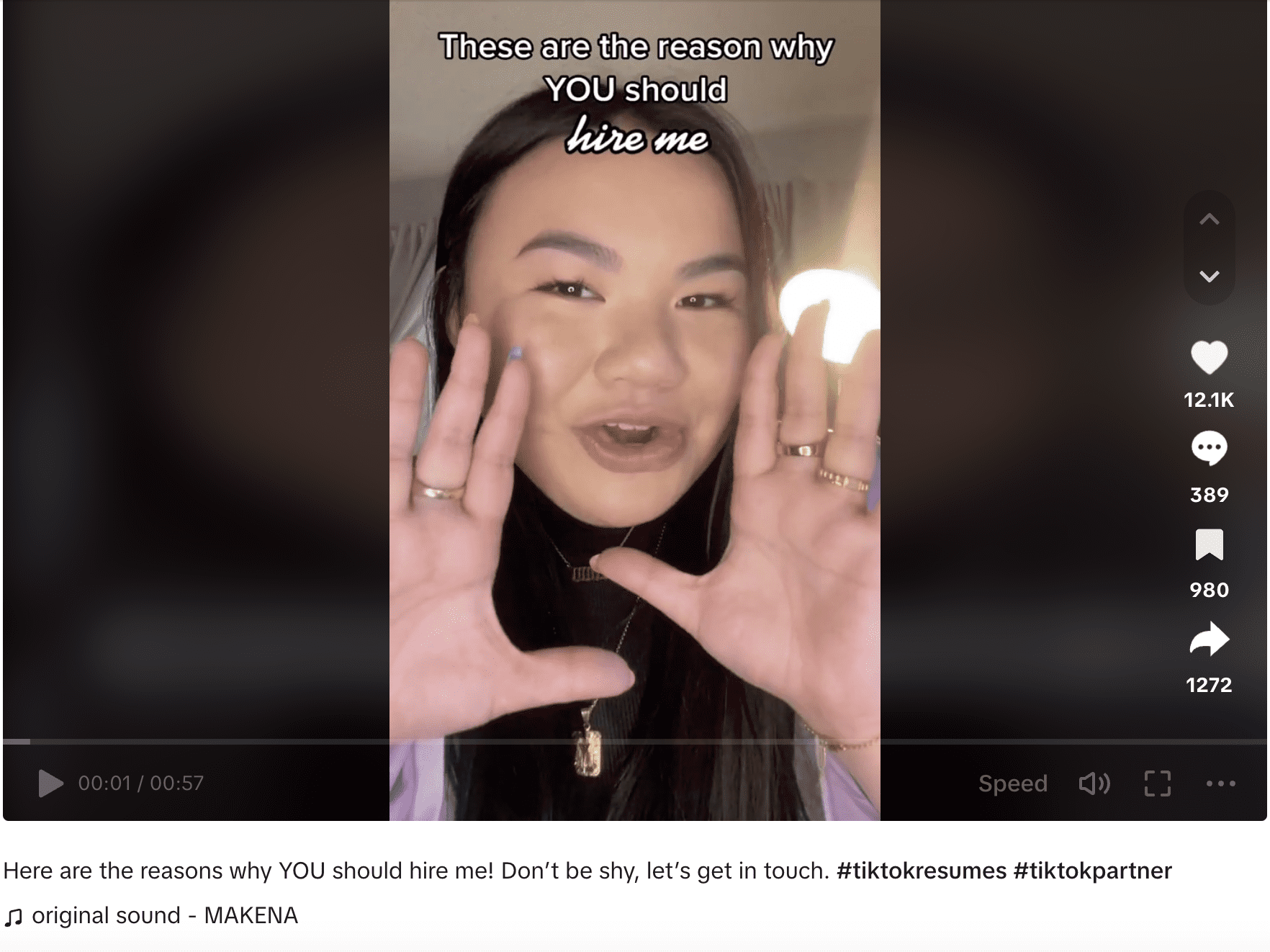 Makena Yee, a 23-year-old applicant from Seattle, is one of TikTok Resumes’ success stories. After her video résumé went viral, accumulating millions of views and hundreds of comments, including phrases like "Someone hire herrrr!", Yee received more than 15 job leads.