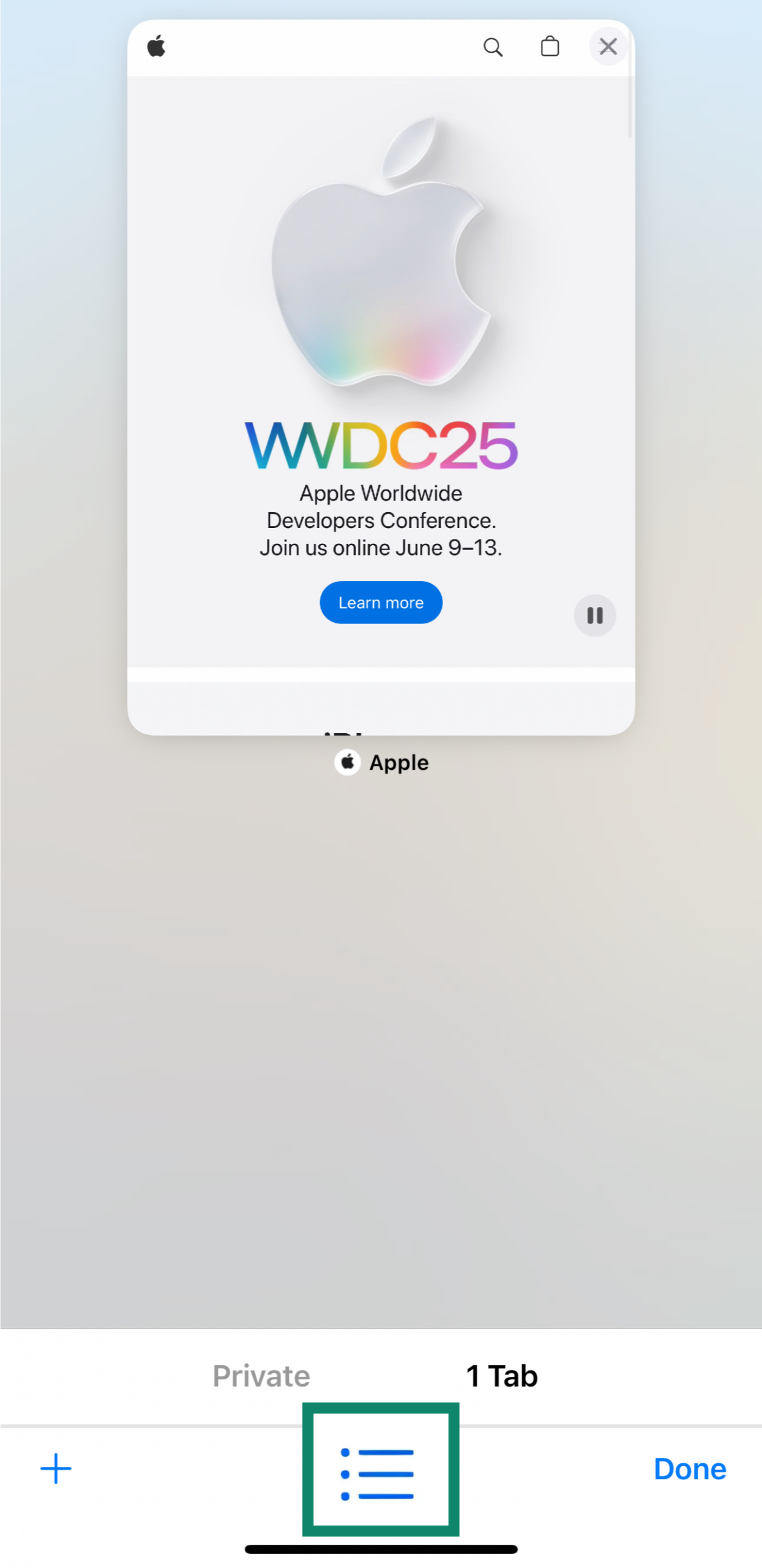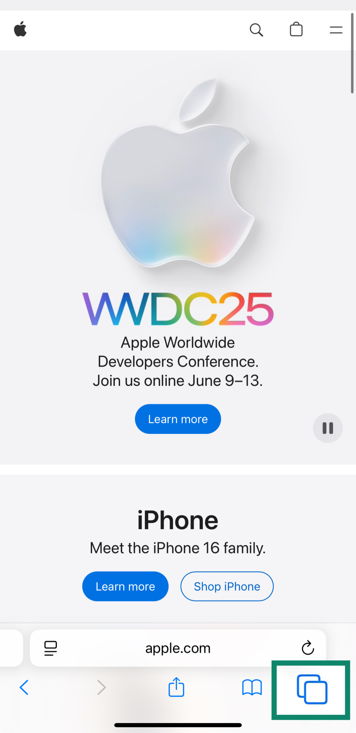 1. Launch Safari and click the Tabs button (two overlapping squares) in the bottom-right corner.