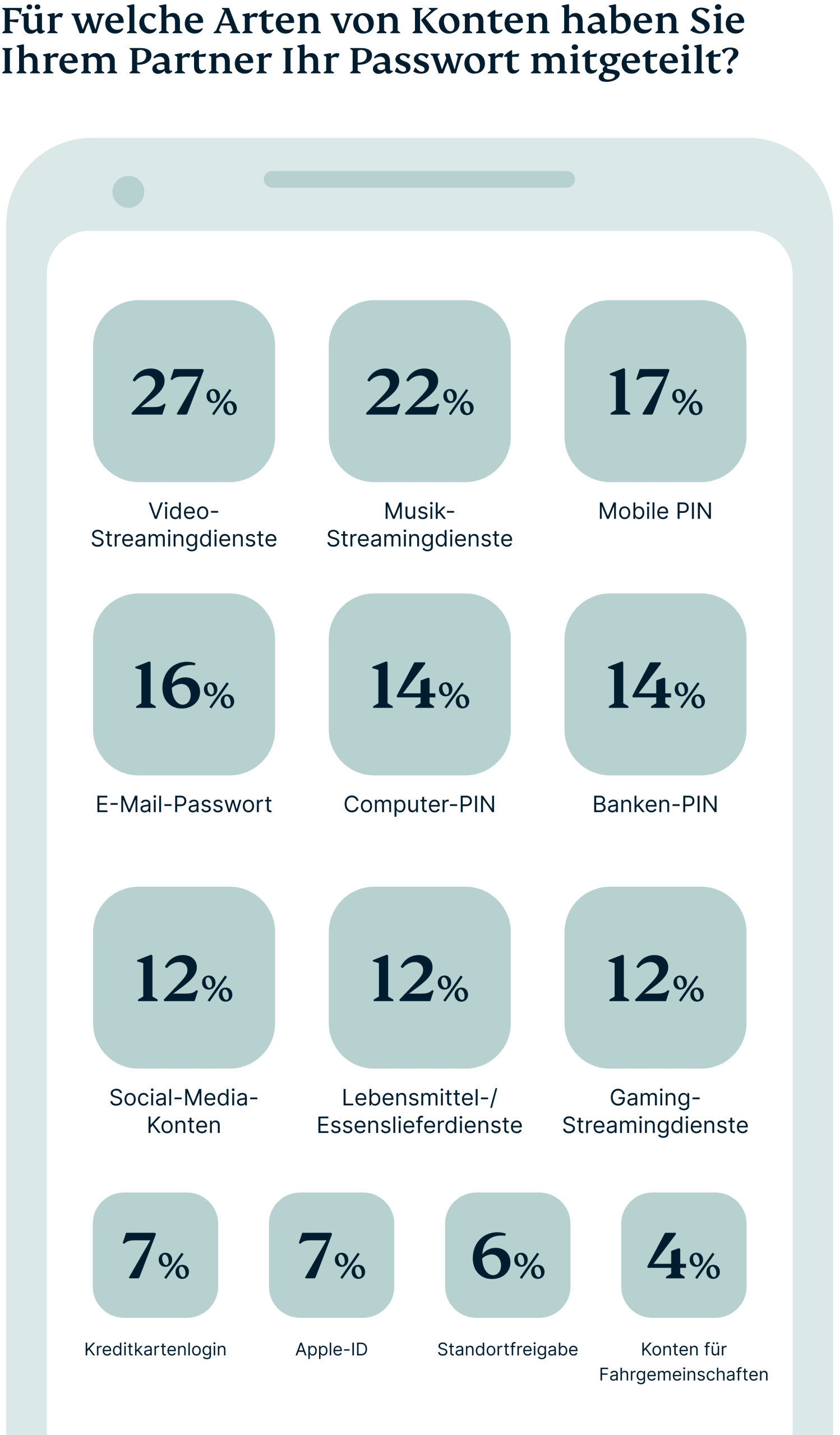 • Nur 8 % warten bis zur Hochzeit … bevor sie ihre Passwörter teilen