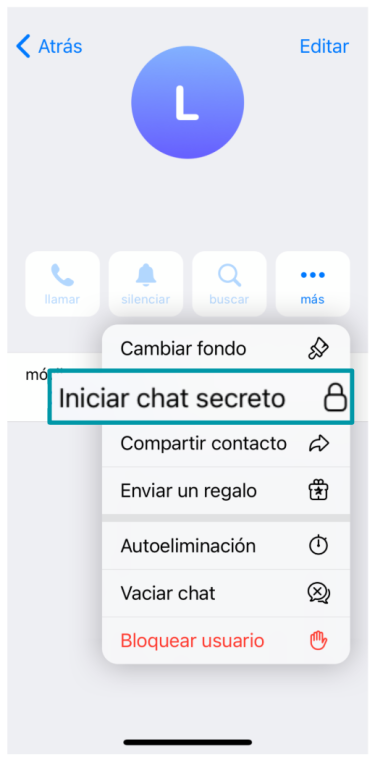 Información importante: estos chats no se almacenan en la nube de Telegram y no se pueden reenviar, pero la persona con la que estás chateando podría sacar capturas de pantalla, así que no hay una garantía de privacidad absoluta.