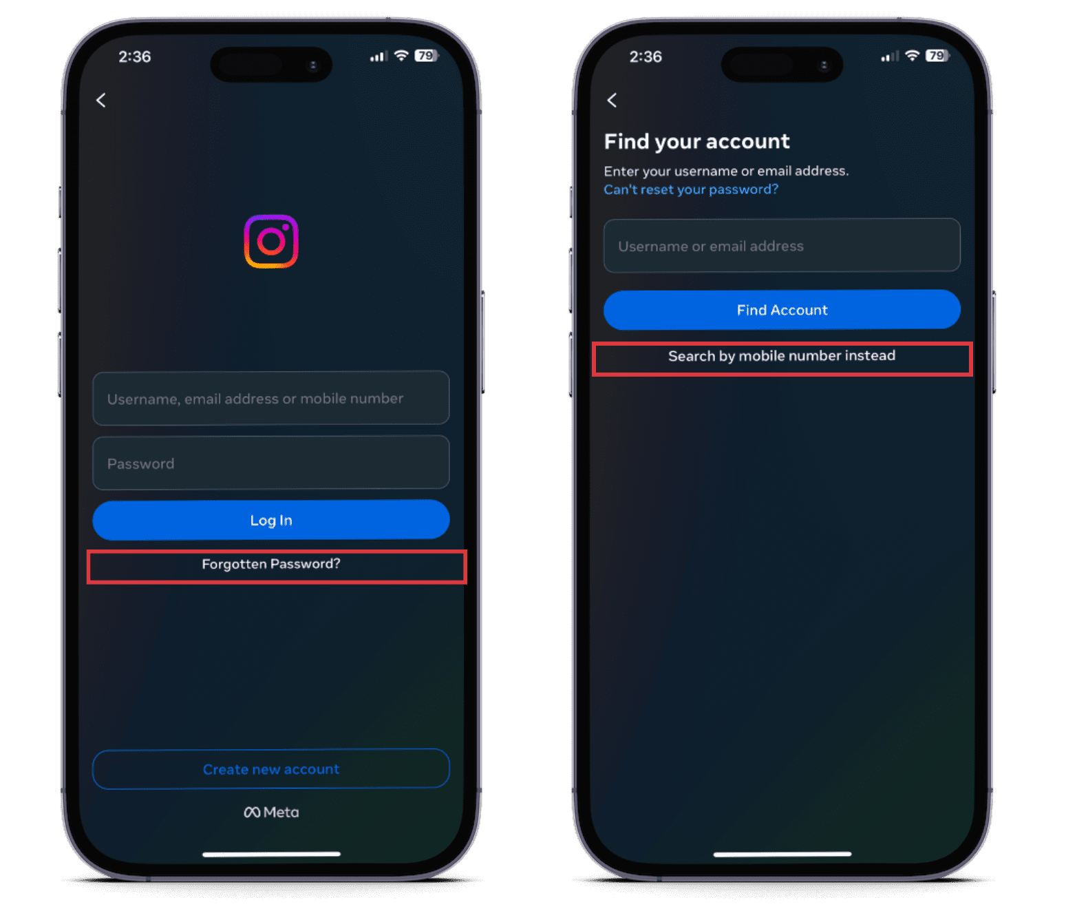 - En la página de inicio de sesión de Instagram, toque "¿Olvidó la contraseña?".
