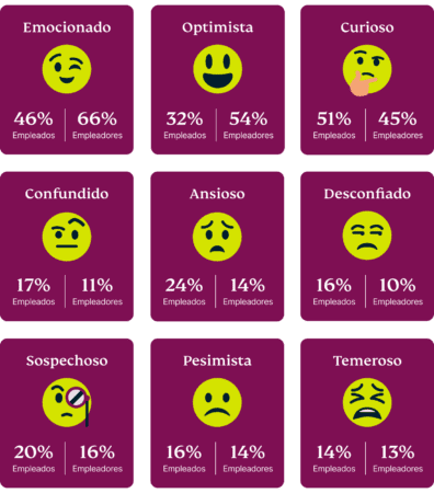 Los empleadores son más proclives a expresar emoción, curiosidad y optimismo ante la expectativa de un entorno laboral en el metaverso, mientras que los empleados tienden a expresar ansiedad y sospecha.
