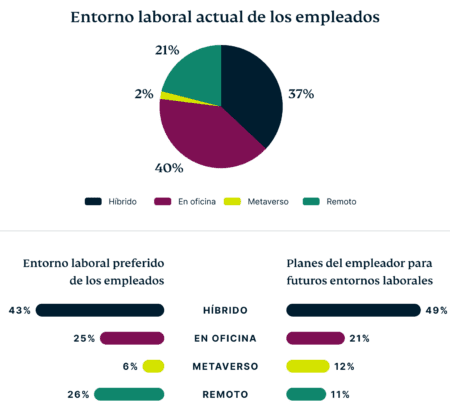 Además, muchos empleadores manifiestan la intención de cambiarse a un entorno híbrido en el futuro, lo que implicaría menos entornos laborales físicos a futuro.