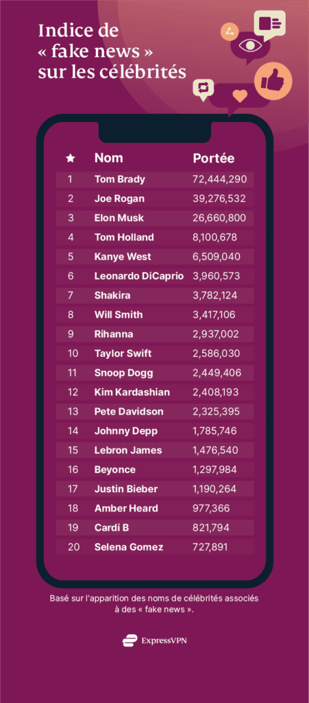 Le classement des 20 célébrités les plus touchées par les « fake news »