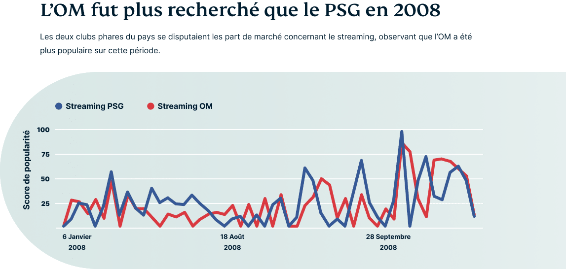 On peut également noter que cela n'a pas toujours été le cas. A une certaine époque en 2008, l'OM était plus populaire que le PSG en France.