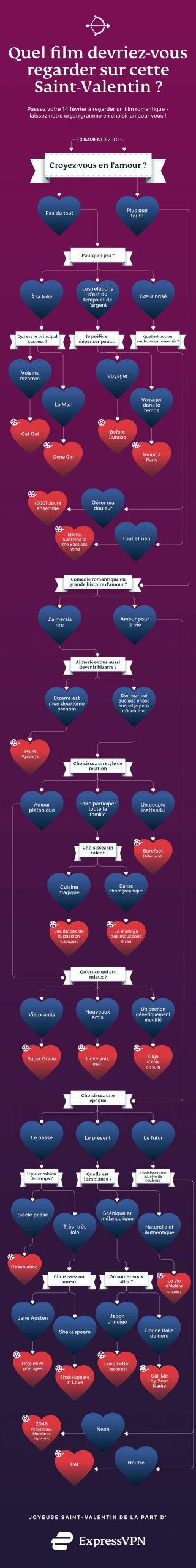 Nos experts en streaming ont établi leurs films préférés sur le thème de l'amour sous forme de liste, puis ont décidé d'aller plus loin : fournir un organigramme que vous pourriez utiliser pour trouver le meilleur film pendant cette Saint-Valentin.