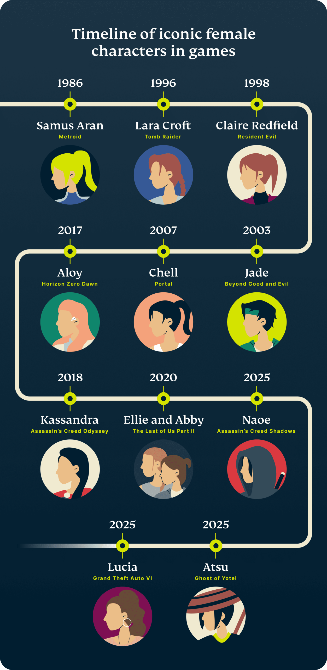 Oggi, le protagoniste femminili sono al centro di alcuni dei giochi più grandi del settore e le loro storie sono più ricche che mai.