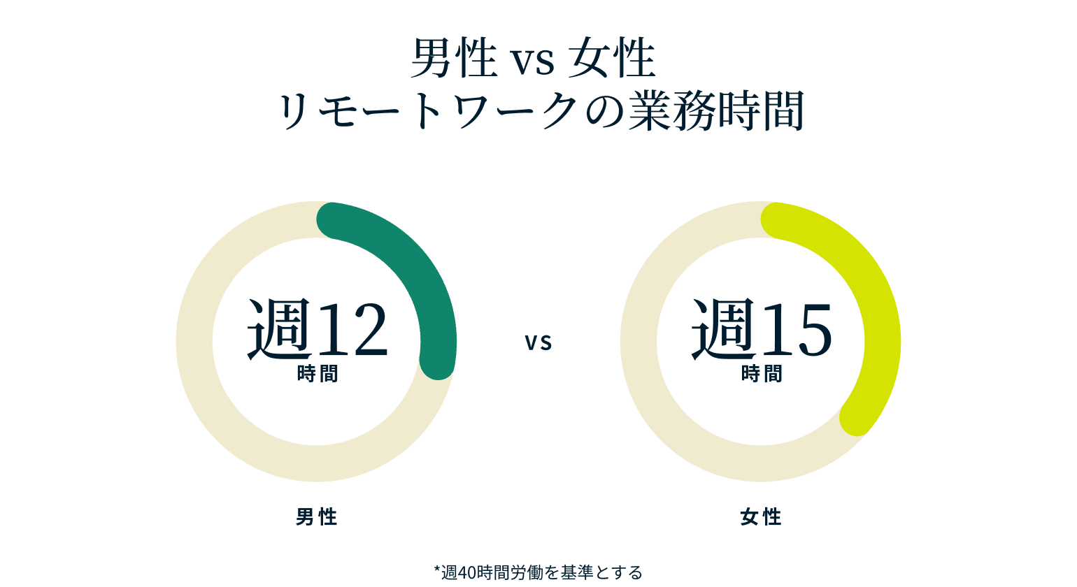 • 男性は、女性に比べて仕事に費やす時間が週平均3時間少ない