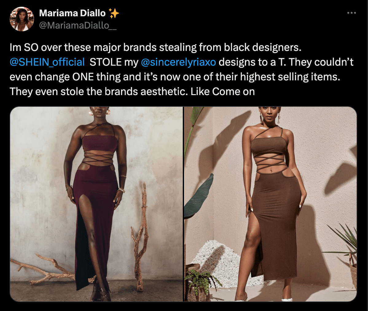 Sheinは、独立系アーティストや小規模ビジネスのデザインをコピーしているとの批判も受けています。多くのデザイナーが、Sheinが彼らのオリジナル作品を無断で大量生産して販売したと主張しています。
