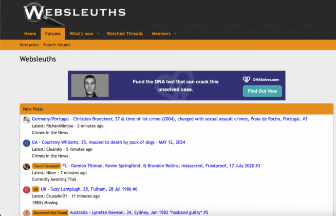 Websleuths 같은 대화형 웹사이트는 회원들이 증거를 분석하고 이론에 대해 토론하고 미스터리를 풀기 위해 협력하는 포럼을 운영합니다.