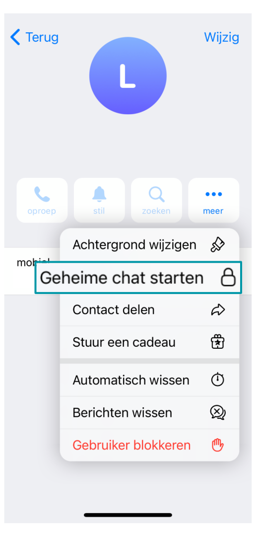 Belangrijk: Deze chats worden niet opgeslagen in de cloud van Telegram en kunnen niet worden doorgestuurd. Houd er echter rekening mee dat de persoon aan de andere kant nog steeds schermafbeeldingen kan maken. Het biedt dus geen 100% garantie op privacy.