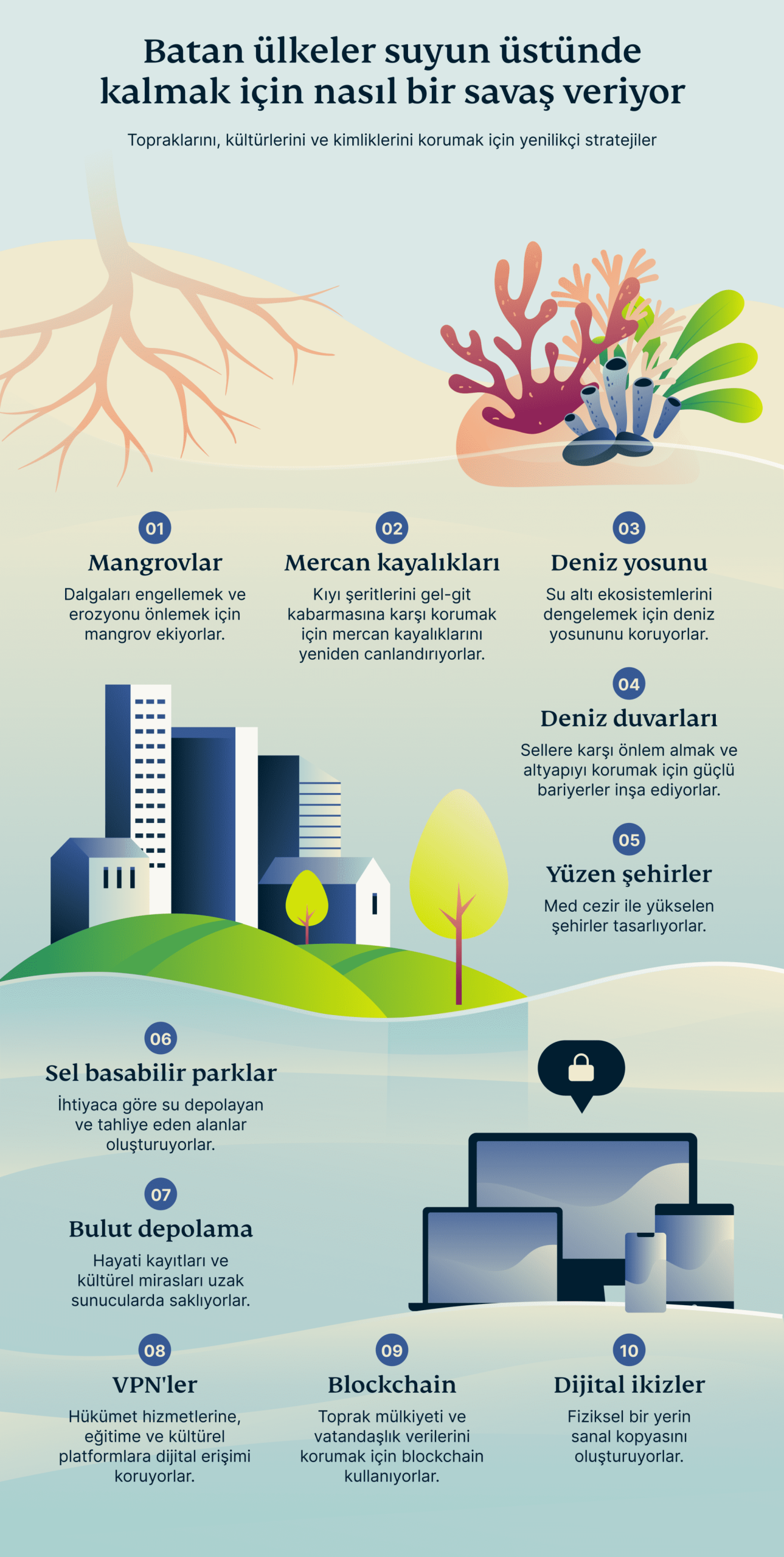 Yükselen denizlerle mücadele eden bu ülkeler, coğrafya ne olursa olsun kültür, kimlik ve insanlık bağlarının korunabileceği bir gelecek inşa ediyor.